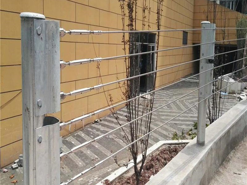 纜索護欄的組成部分:纜索護欄立柱、纜索、纜索護欄中間立柱、托架等。纜索護欄中立立柱主要起到支撐纜索的作用。真正吃力的在纜索護欄兩端立柱,需要將纜索撐緊,這樣才能保證纜索護欄的有效防護。